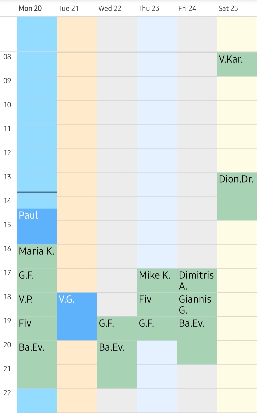 Weekly program - Availability