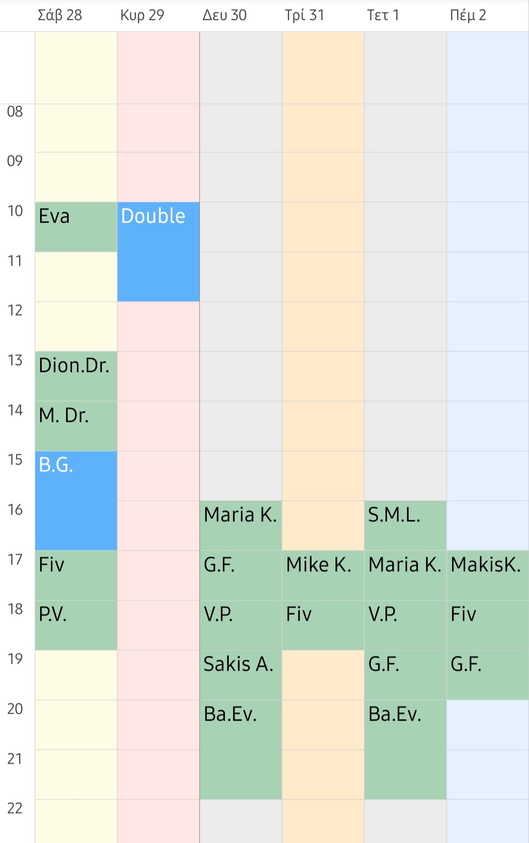 Εβδομαδιαίο πρόγραμμα - Weekly program