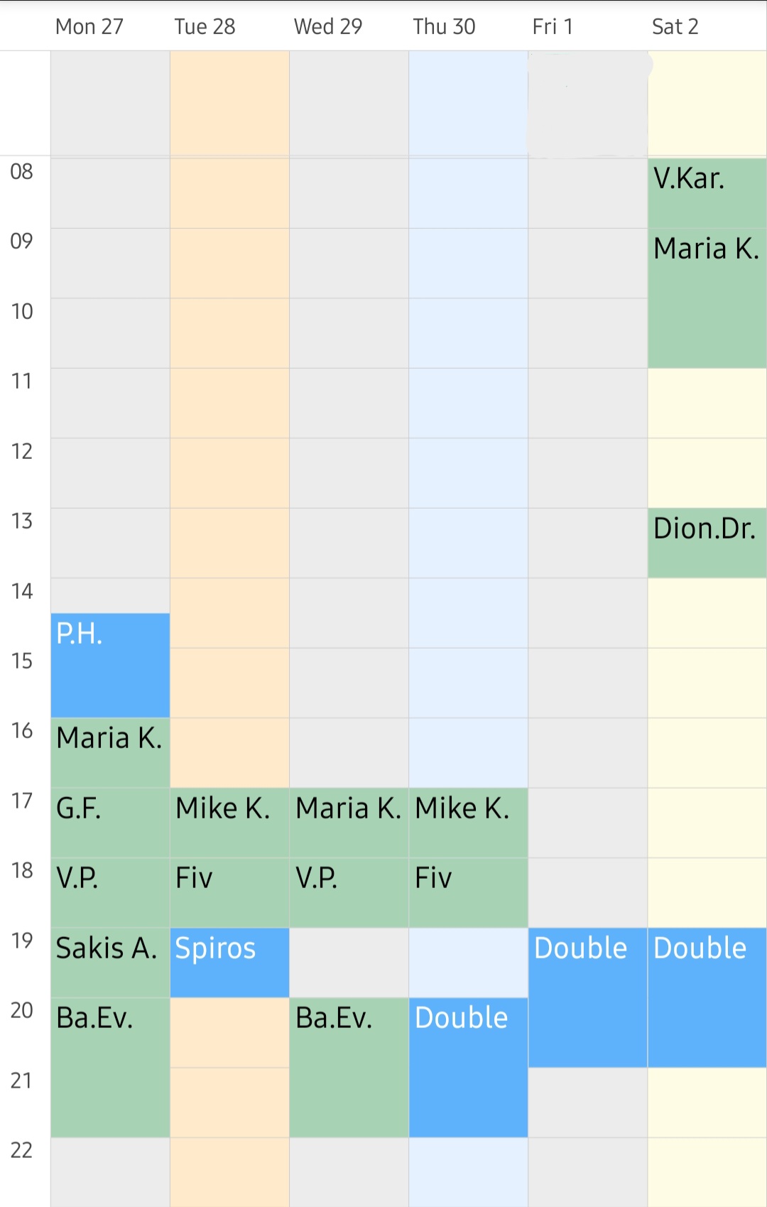 Weekly program - Availability