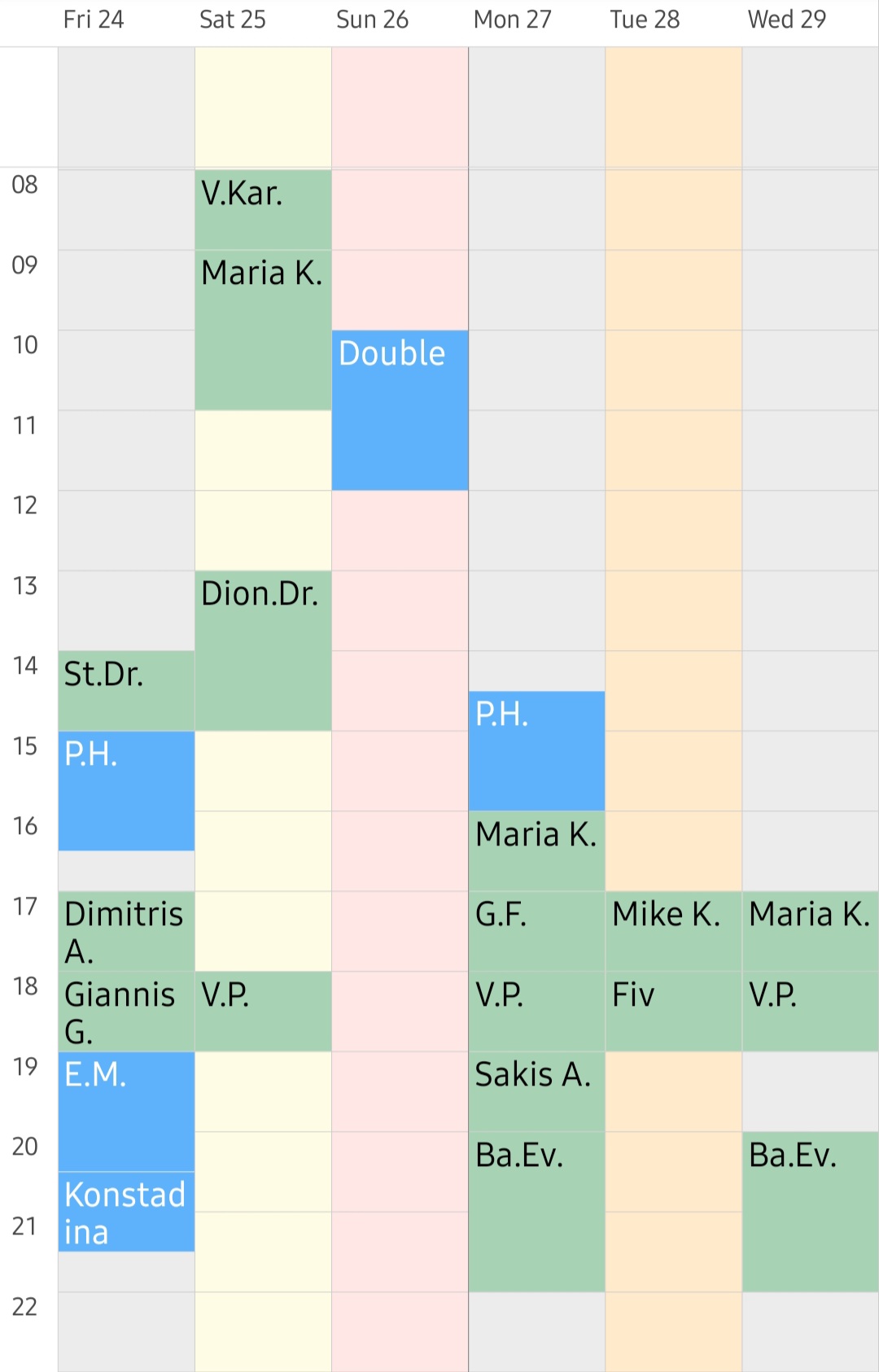 Weekly program - Availability